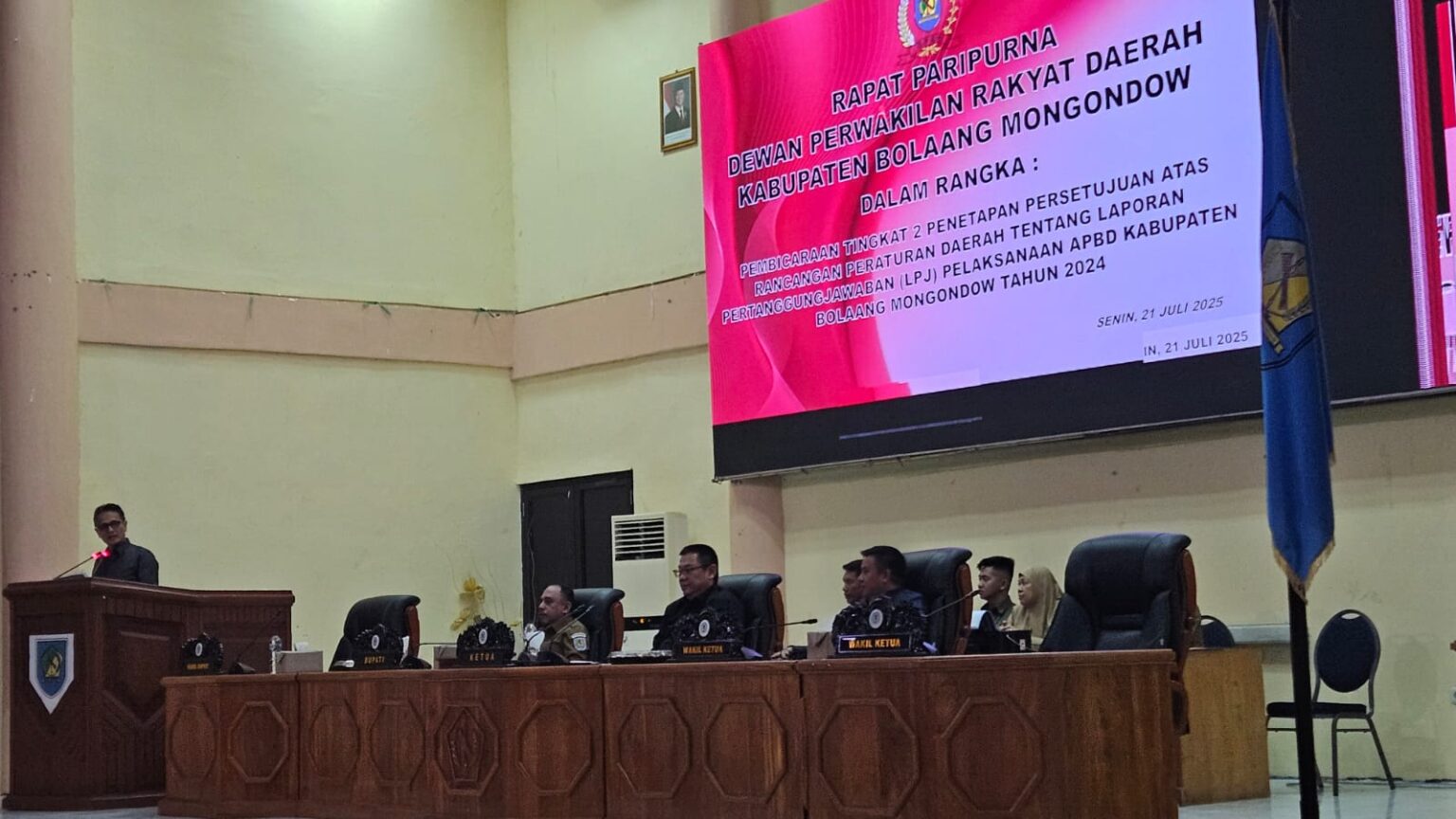 Dua agenda yang diparipurnakan yakni, Pembicaraan Tingkat II atas Rancangan Peraturan Daerah (Ranperda) dan Laporan Pertanggungjawaban (LPj) APBD Bolmong Tahun Anggaran 2024.