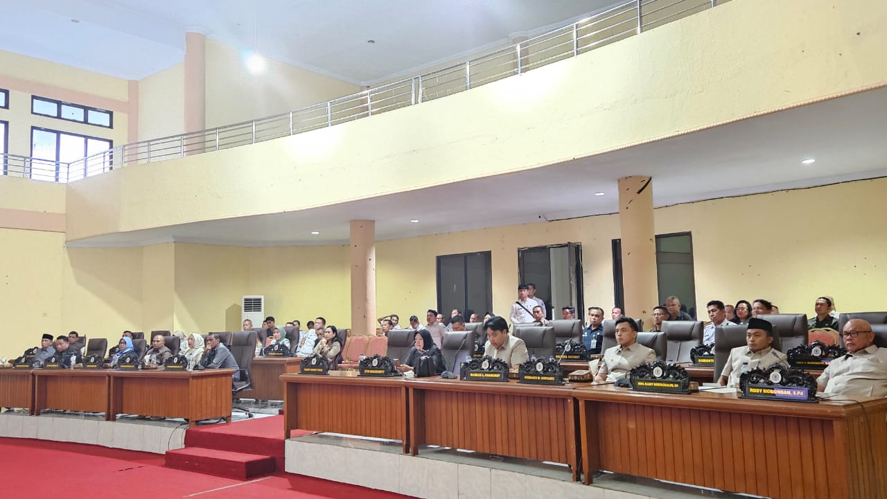 Rapat yang berlangsung di ruang paripurna tersebut, dipimpin Ketua DPRD Bolmong Tony Tumbelaka, didampingi Wakil Ketua Febrianto Tangahu, dan dihadiri para anggota dewan.