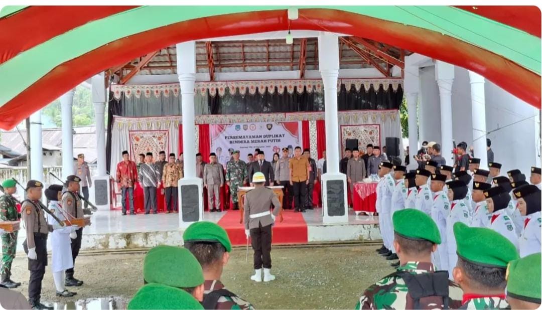 Bendera Merah Putih yang nantinya dikibarkan pada upacara puncak peringatan detik-detik Kemerdekaan Republik Indonesia yang ke-80 tahun itu, diserahkan Bupati Iskandar Kamaru kepada Pasukan pengibar bendera pusaka (Paskibraka).