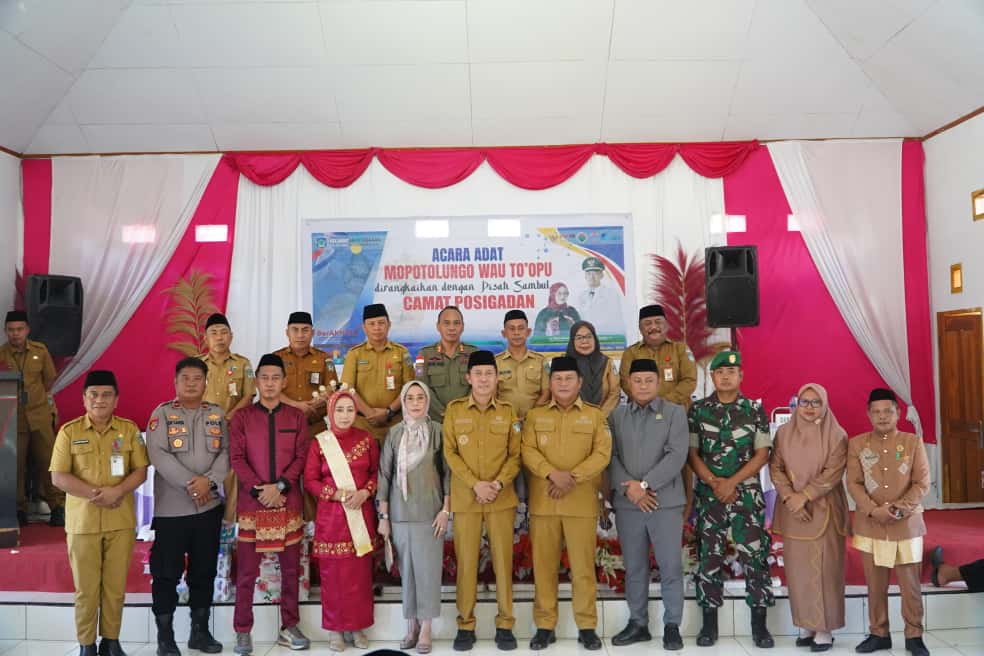 Acara pisah sambut tersebut dirangkaikan juga dengan pelaksanaan prosesi adat “Mopotolungo wau To’opu” khas Gorontalo, yang menandakan penerimaan dan pengukuhan Muhamad Kamaru SPi sebagai Camat Posigadan yang baru.