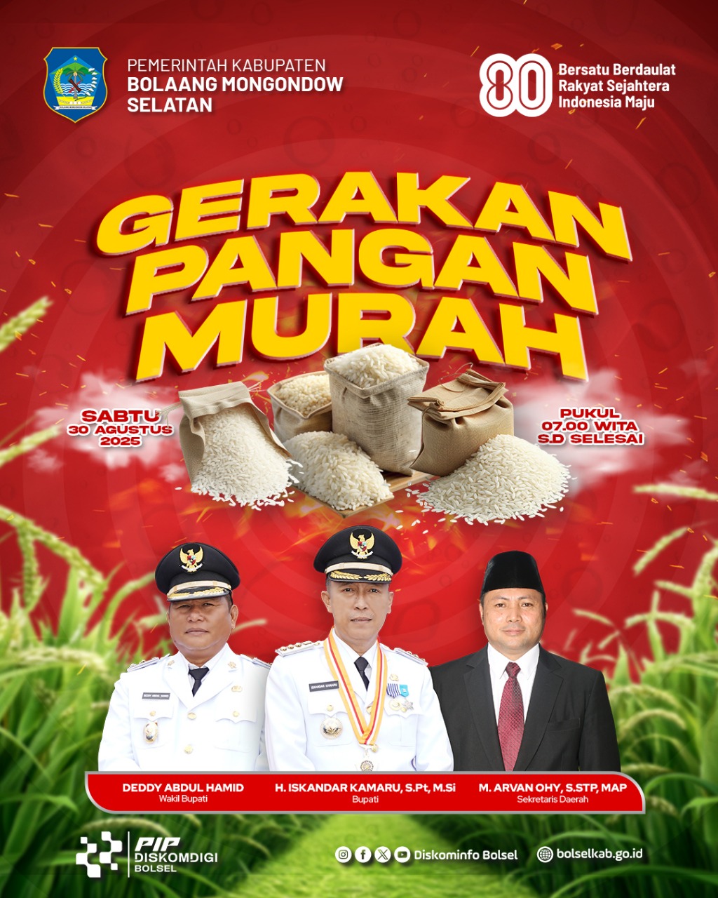 KILAS24,BOLSEL – Pemerintah Kabupaten (Pemkab) Bolaang Mongondow Selatan (Bolsel), menggelar Gerakan Pangan Murah (GPM), Sabtu (30/08/2025).