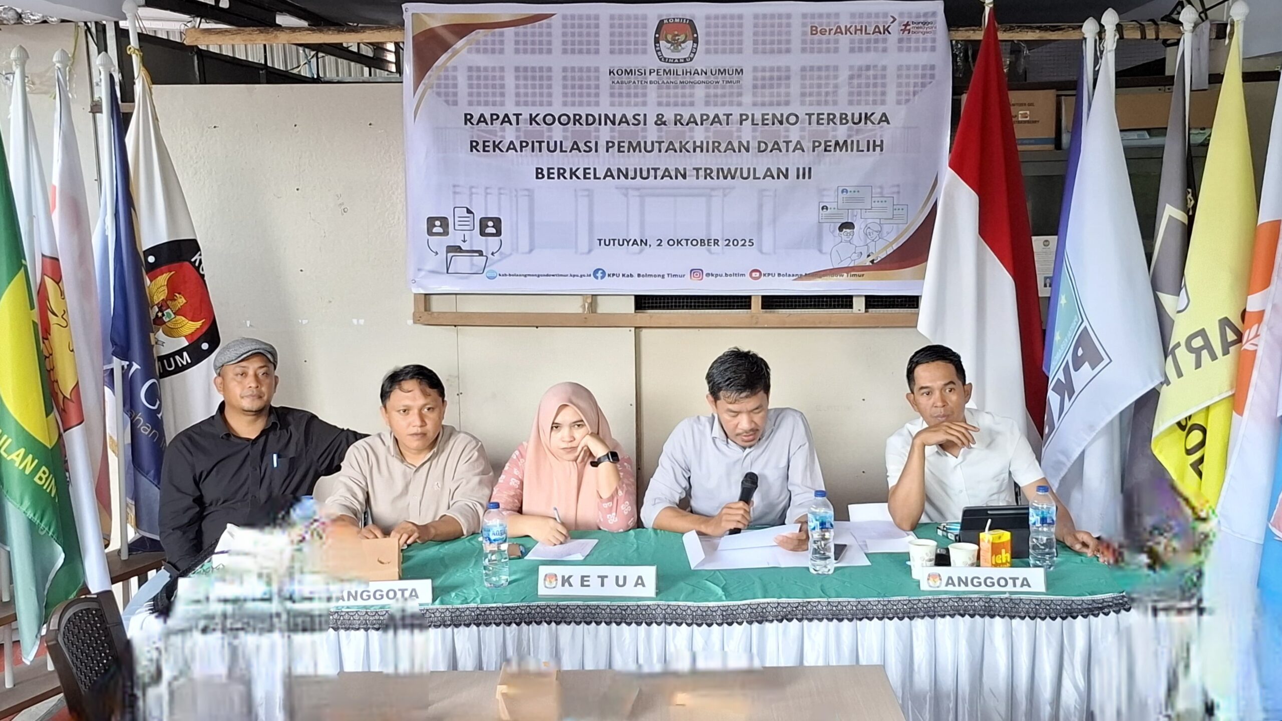 BOLTIM — Komisi Pemilihan Umum (KPU) Bolaang Mongondow Timur (Boltim) menggelar rapat pleno Pemutakhiran Data Pemilih Berkelanjutan (PDPB) Triwulan III Tahun 2025, Kamis (2/10), di ruang rapat kantor KPU.