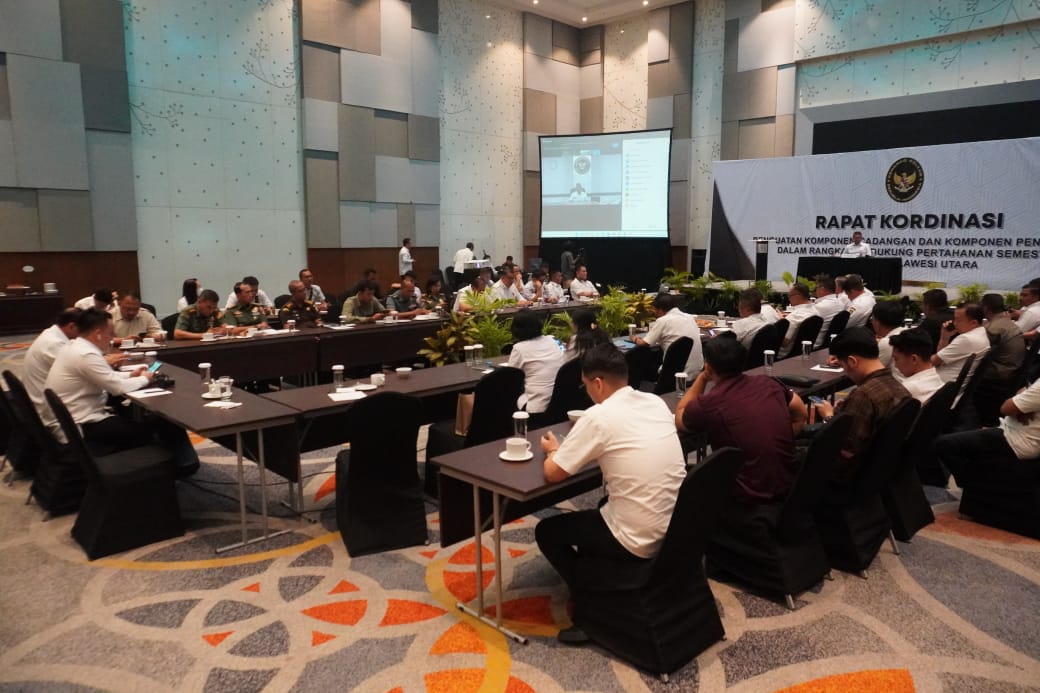 Rakor tersebut mengangkat tema “Penguatan Komponen Cadangan dan Komponen Pendukung Dalam Rangka Mendukung Pertahanan Semesta di wilayah Sulawesi Utara (Sulut.