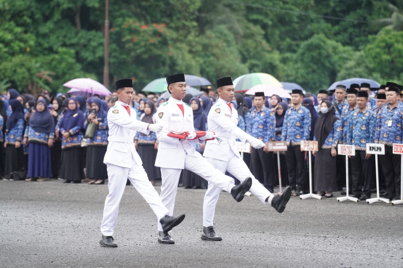 Kegiatan yang dirangkaikan dengan Apel Korpri tersebut berlangsung khidmat dan penuh makna, dipimpin langsung oleh Wakil Bupati Deddy Abdul Hamid, serta dihadiri jajaran Forkopimda, para veteran, Sekda M. Arvan Ohy bersama para pejabat tinggi pratama, administrator, pengawas, dan jajaran ASN lainnya.